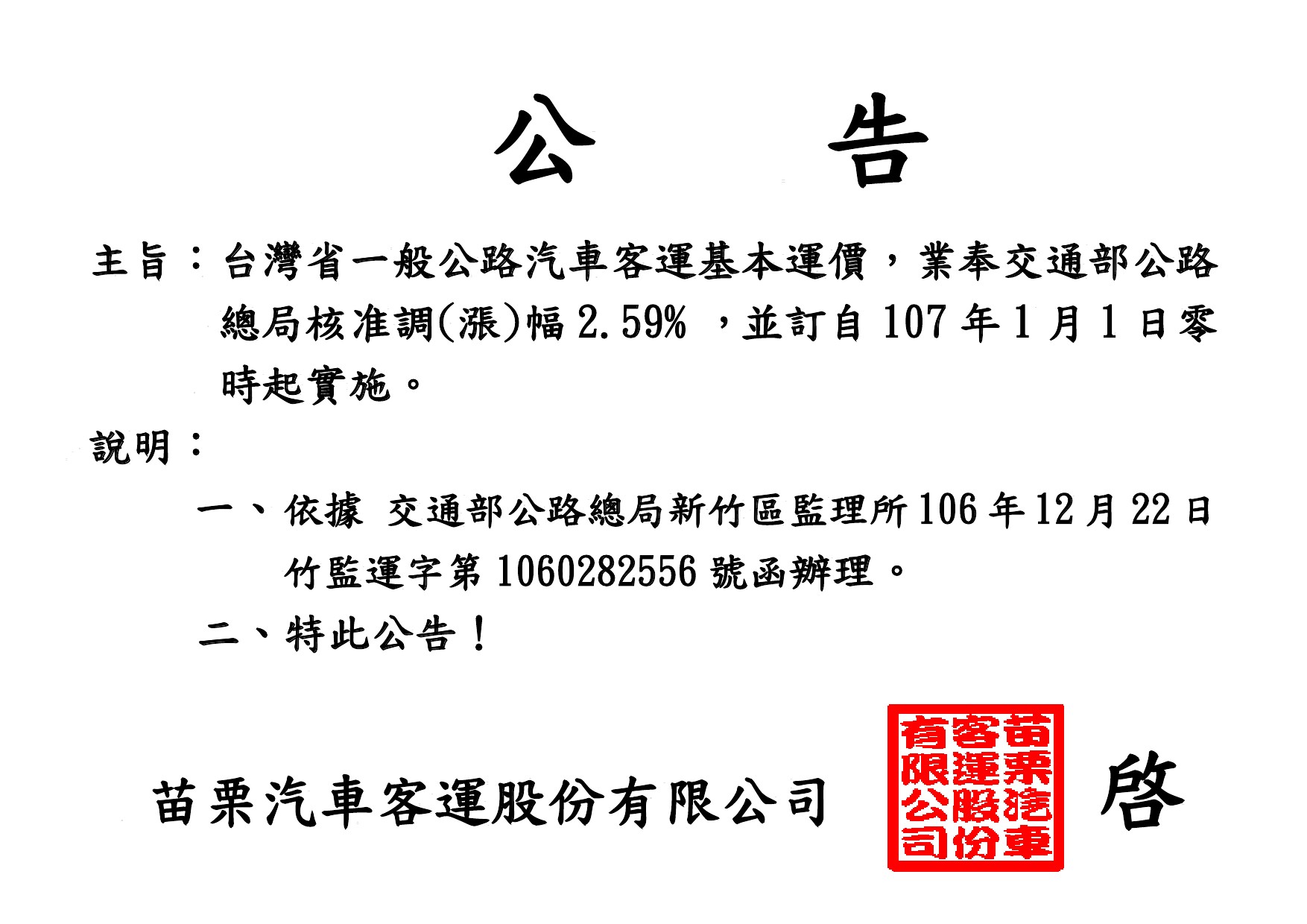 107年度苗栗客運票價調漲說明