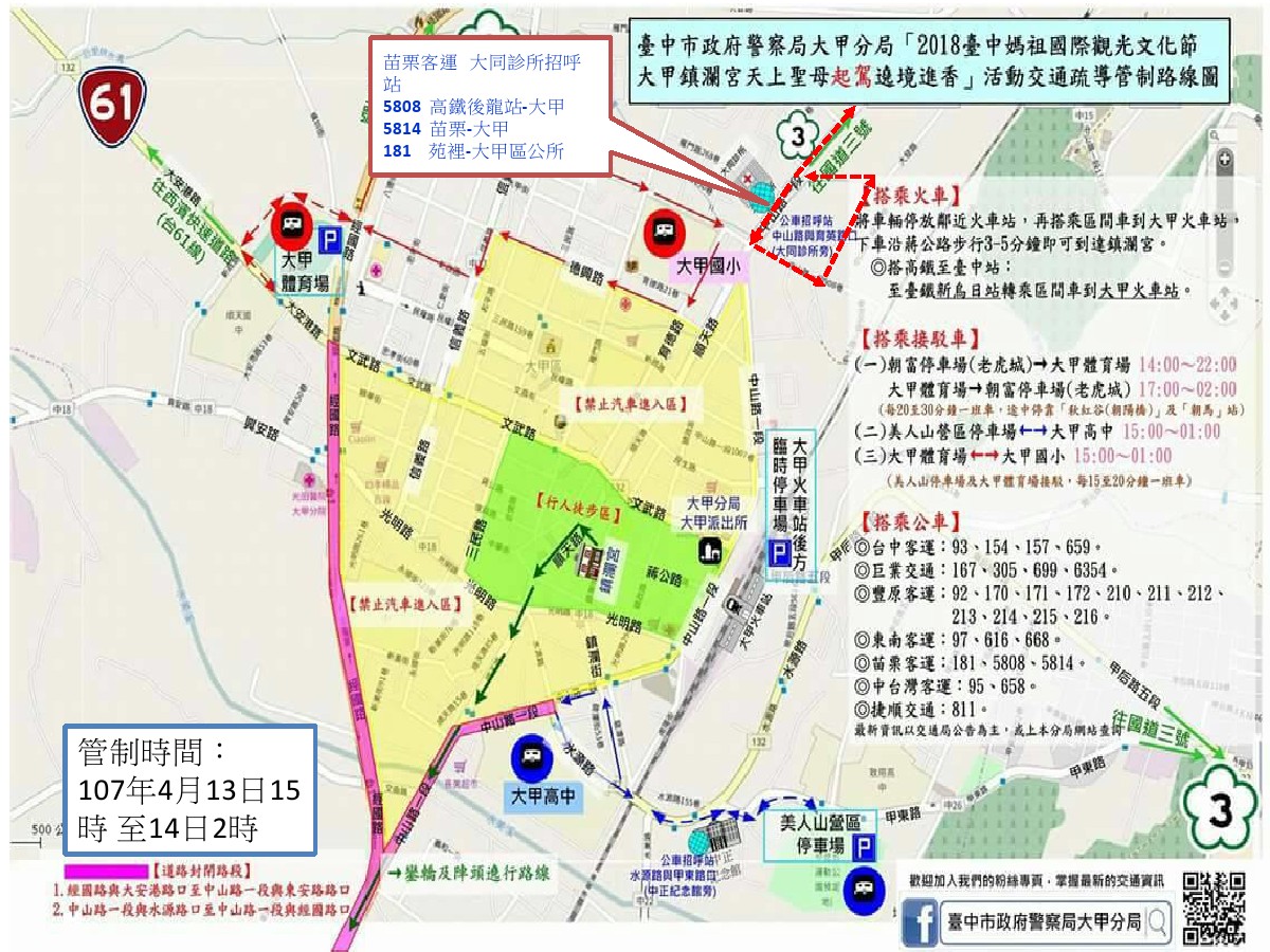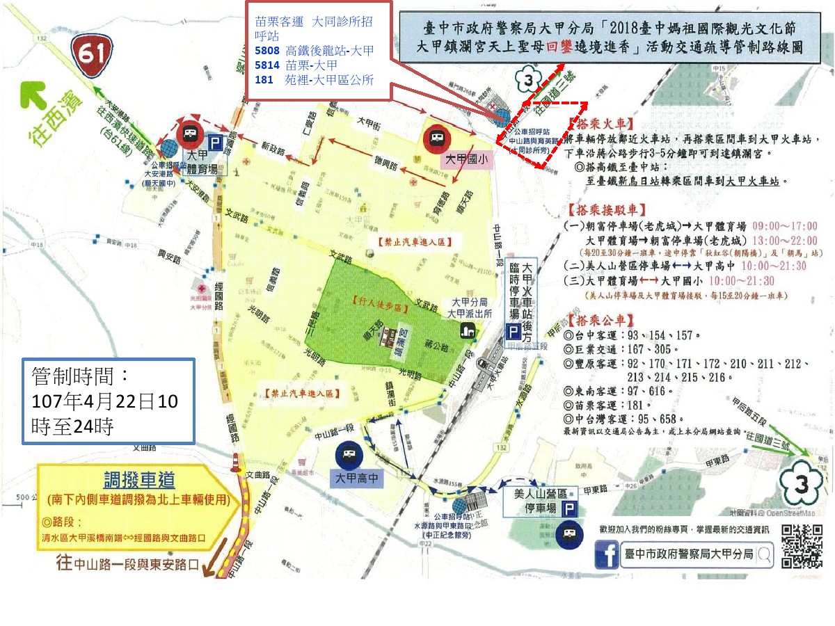 【2018年臺中媽祖國際觀光文化節遶境進香活動】路線調整通知