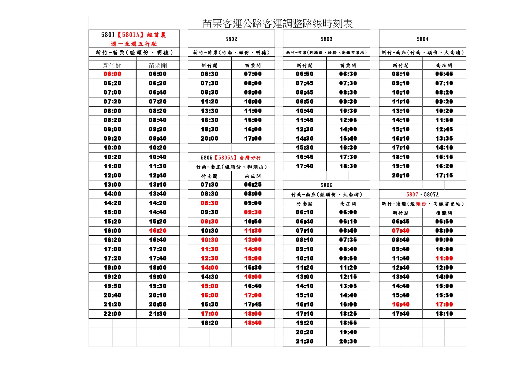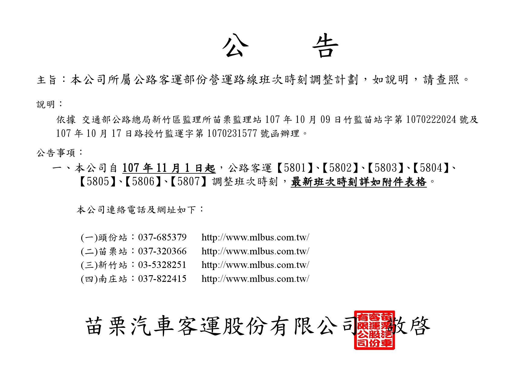 本公司所屬公路客運部份營運路線班次時刻調整計劃