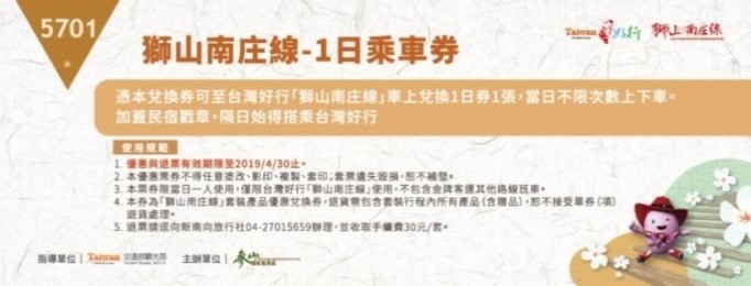 | 南庄線或獅山線1日乘車券 | 2份 |