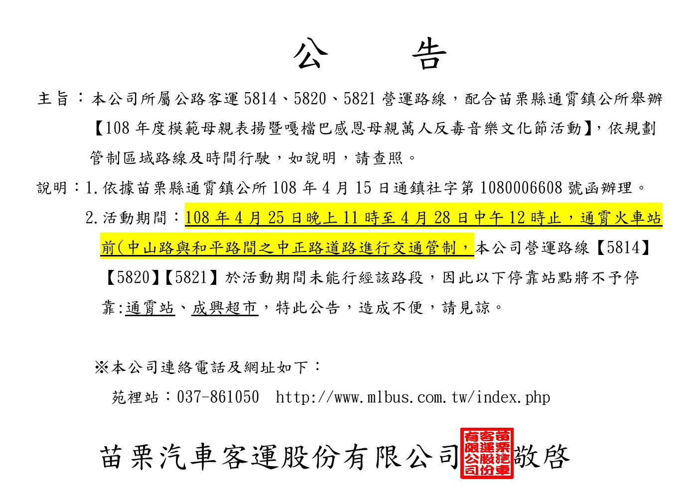 【108年嘎檔巴感恩母親萬人反毒音樂文化節活動】路線調整