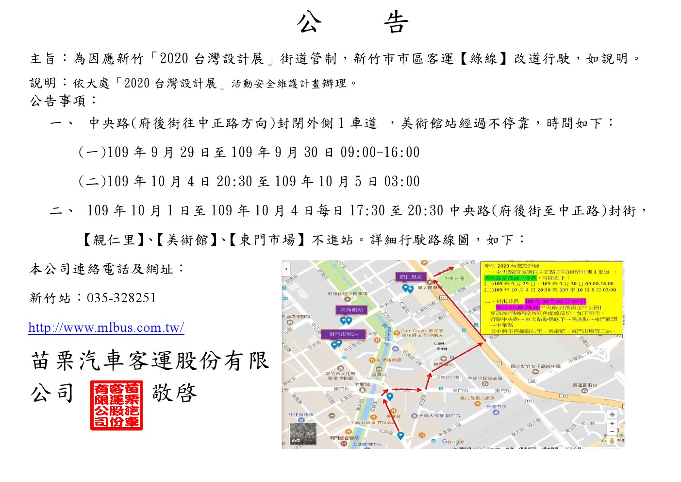 新竹「2020台灣設計展」,街道管制路線調整通知
