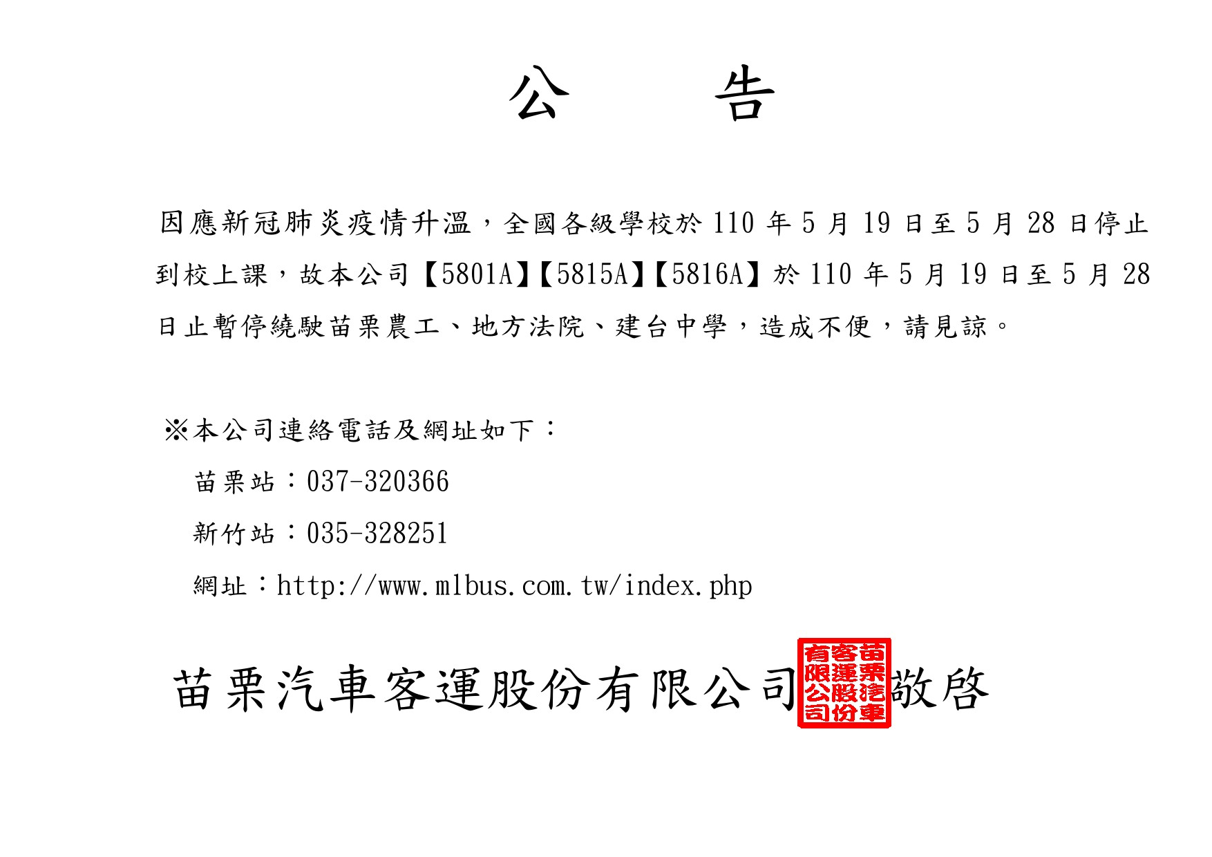 新冠肺炎疫情升溫5801A 5815A 5816A暫停