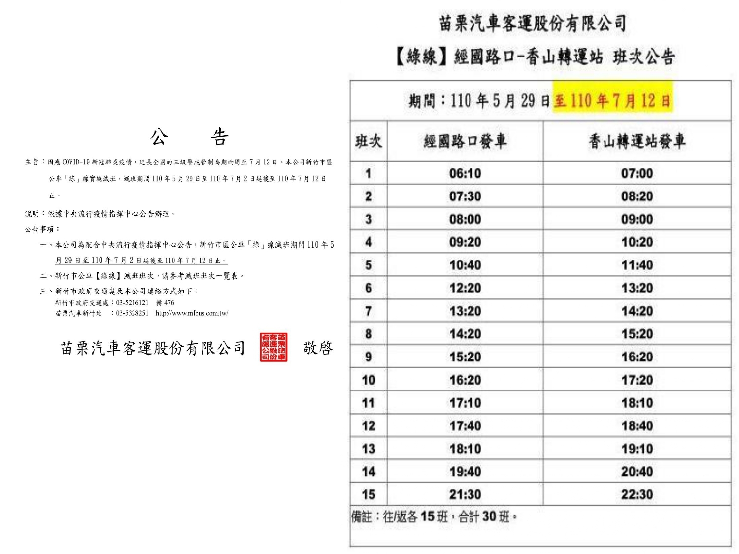因應延長全國三級警戒,「綠線」減班期間延長至07.12