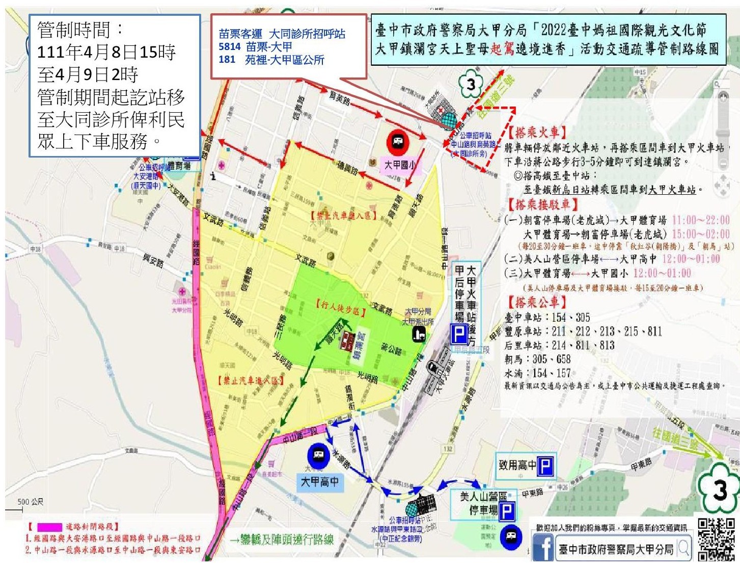 【2022年臺中媽祖國際觀光文化節遶境進香活動】路線調整通知