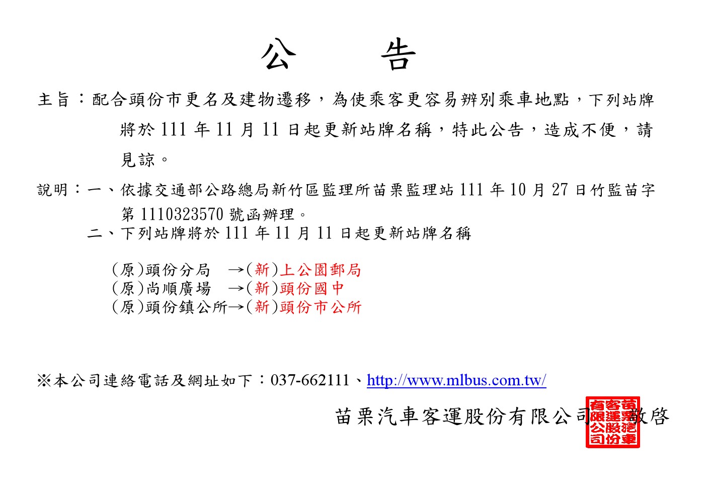 5801等9條路線公客運路線及5804等5條路線站名變更