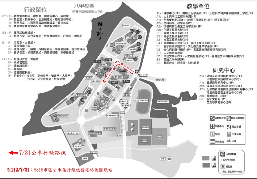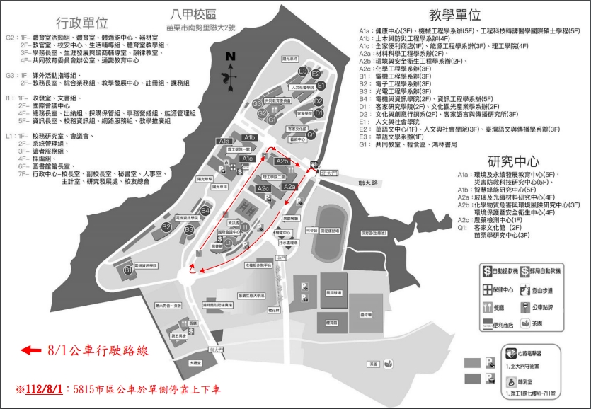 本公司營運路線5815往返程之【八甲校區1】【八甲校區2】