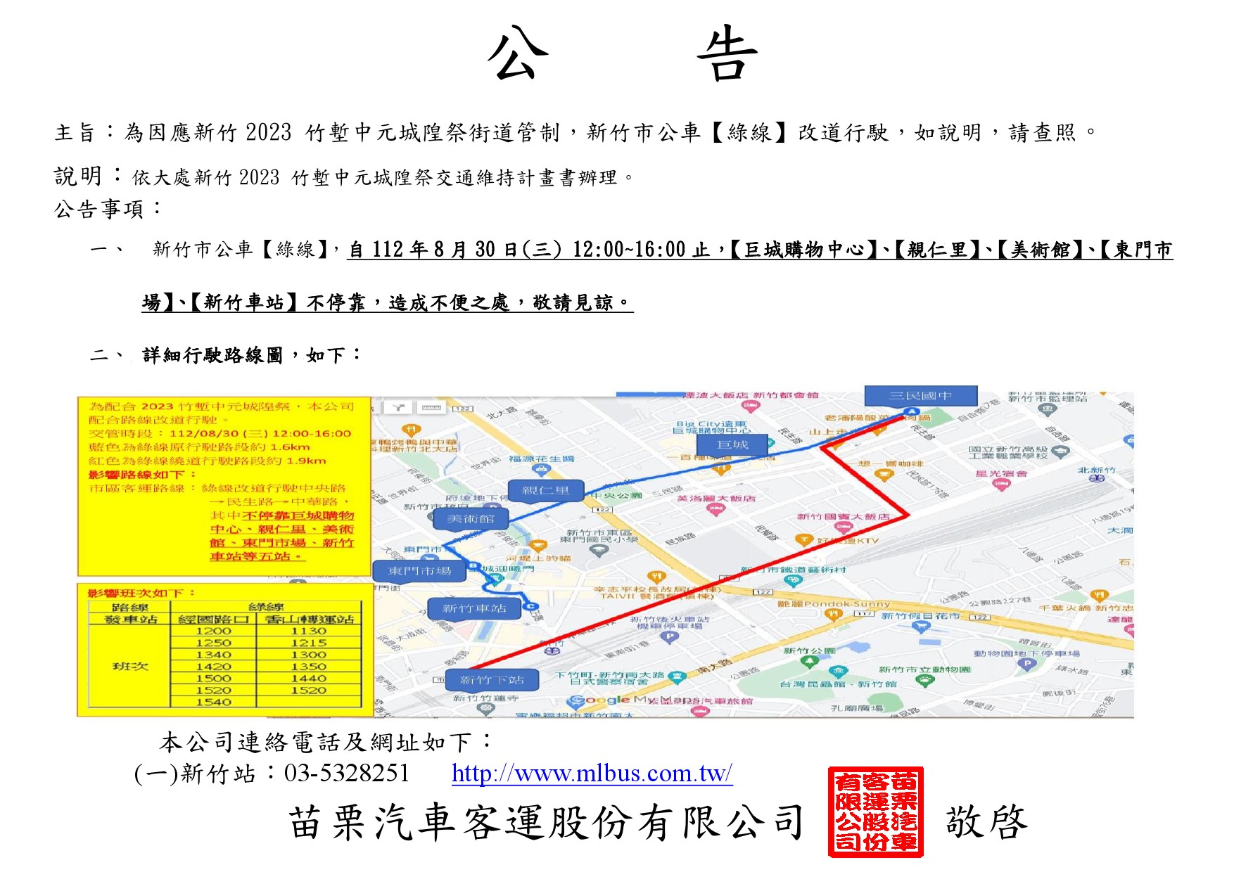 新竹2023 竹塹中元城隍祭【綠線】、【5823】調整路線