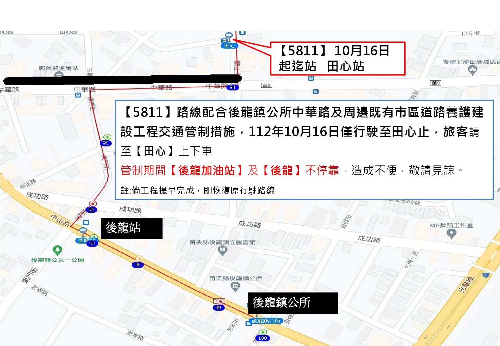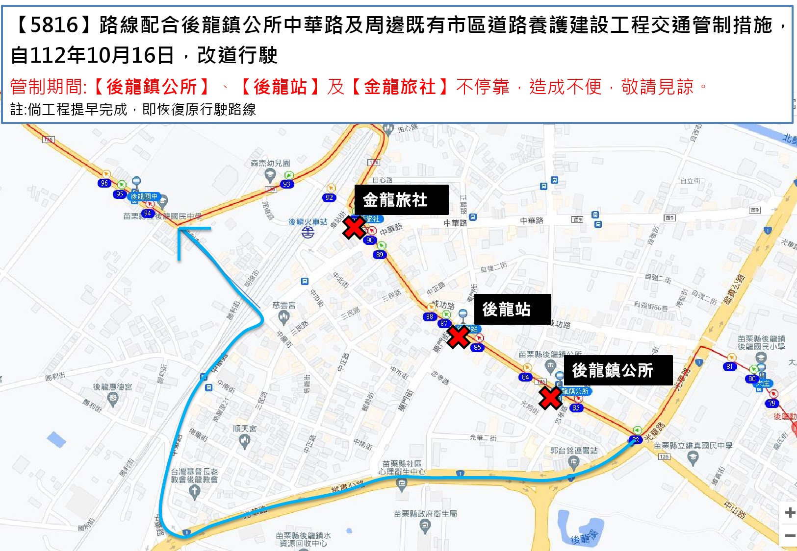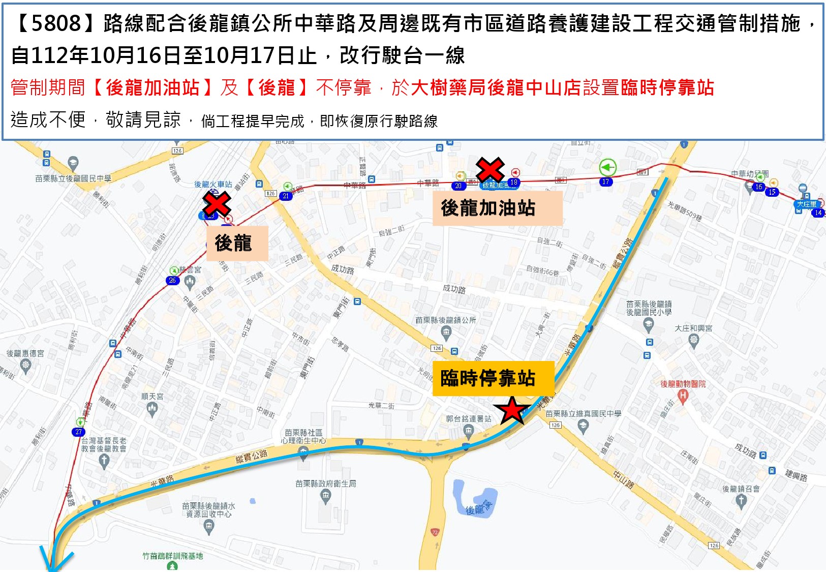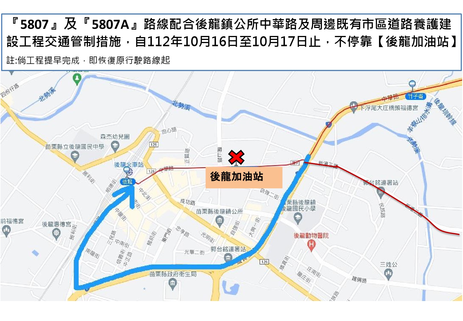 112年10月16.17日,後龍中華路改道,多條路線影響