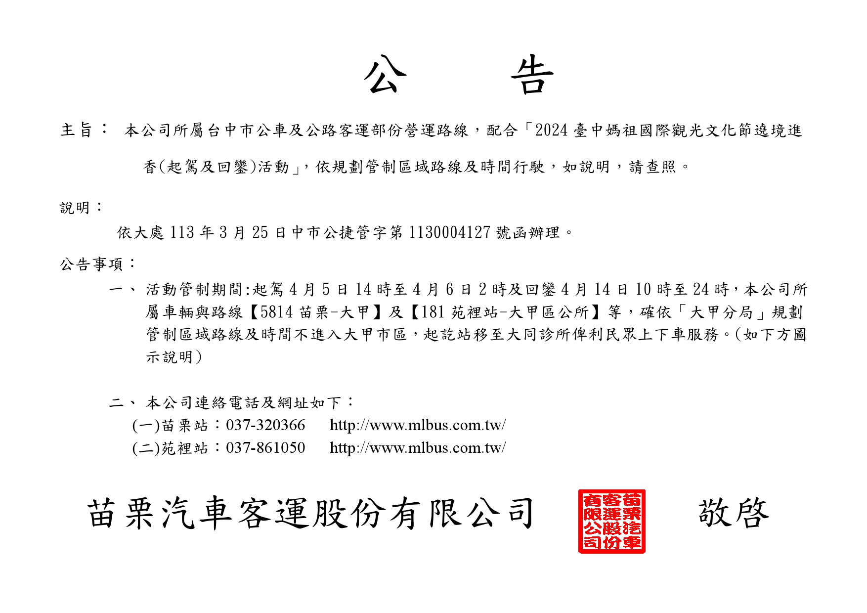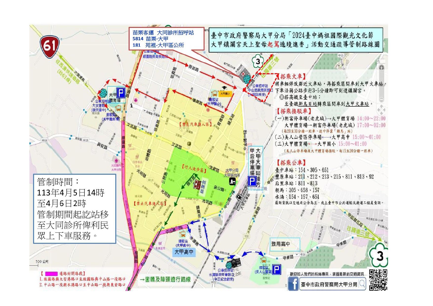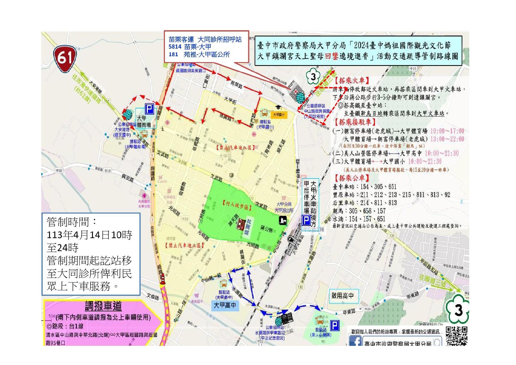 【2024年臺中媽祖國際觀光文化節遶境進香活動】路線調整通知