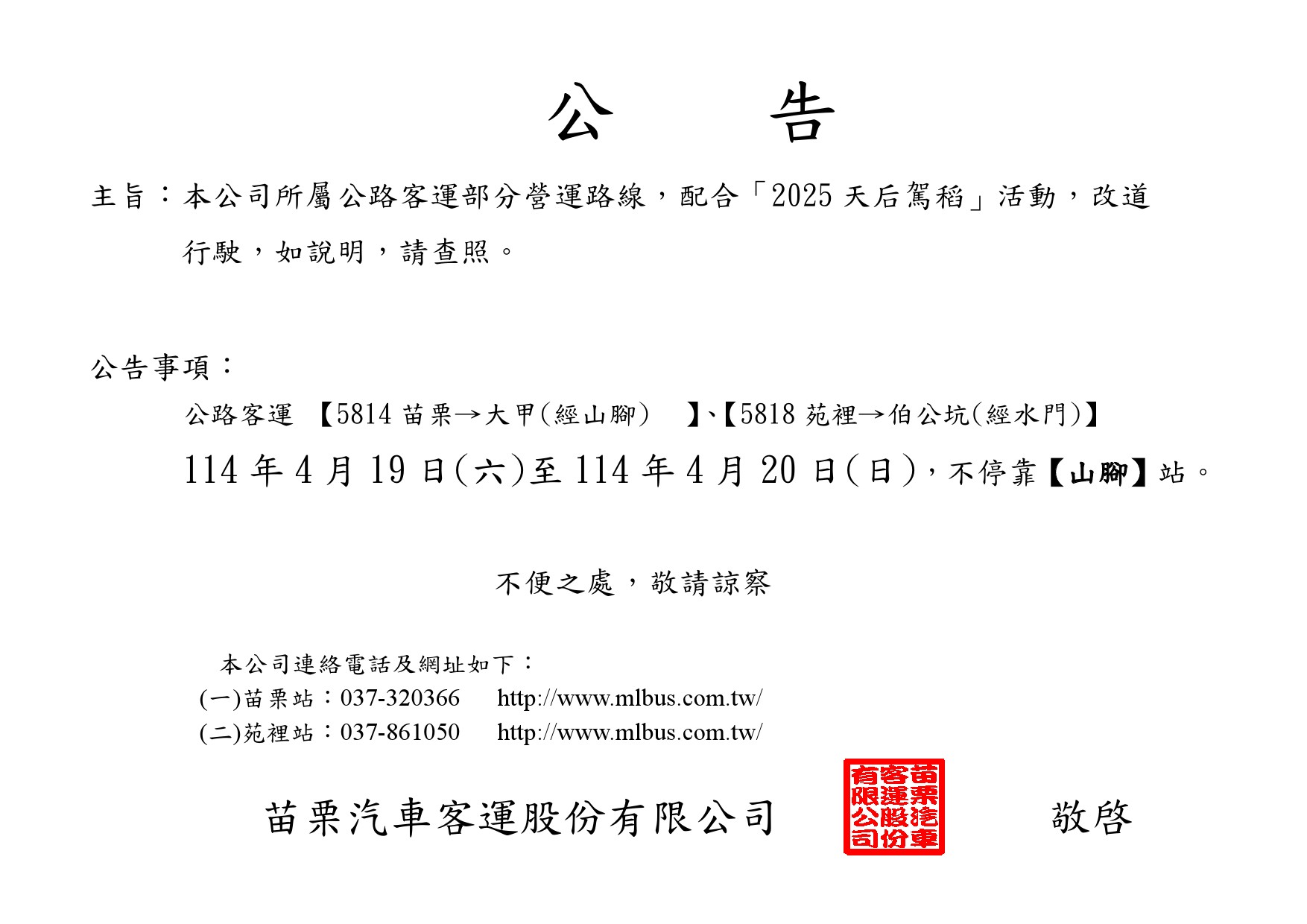 【5814】【5818】因天后駕稻活動不停靠[山腳]