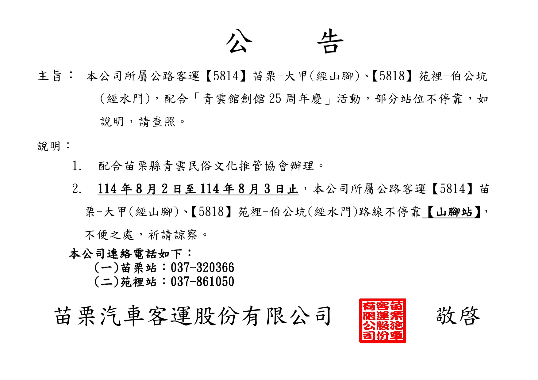 配合「青雲館創館25周年慶」活動,部分站位不停靠