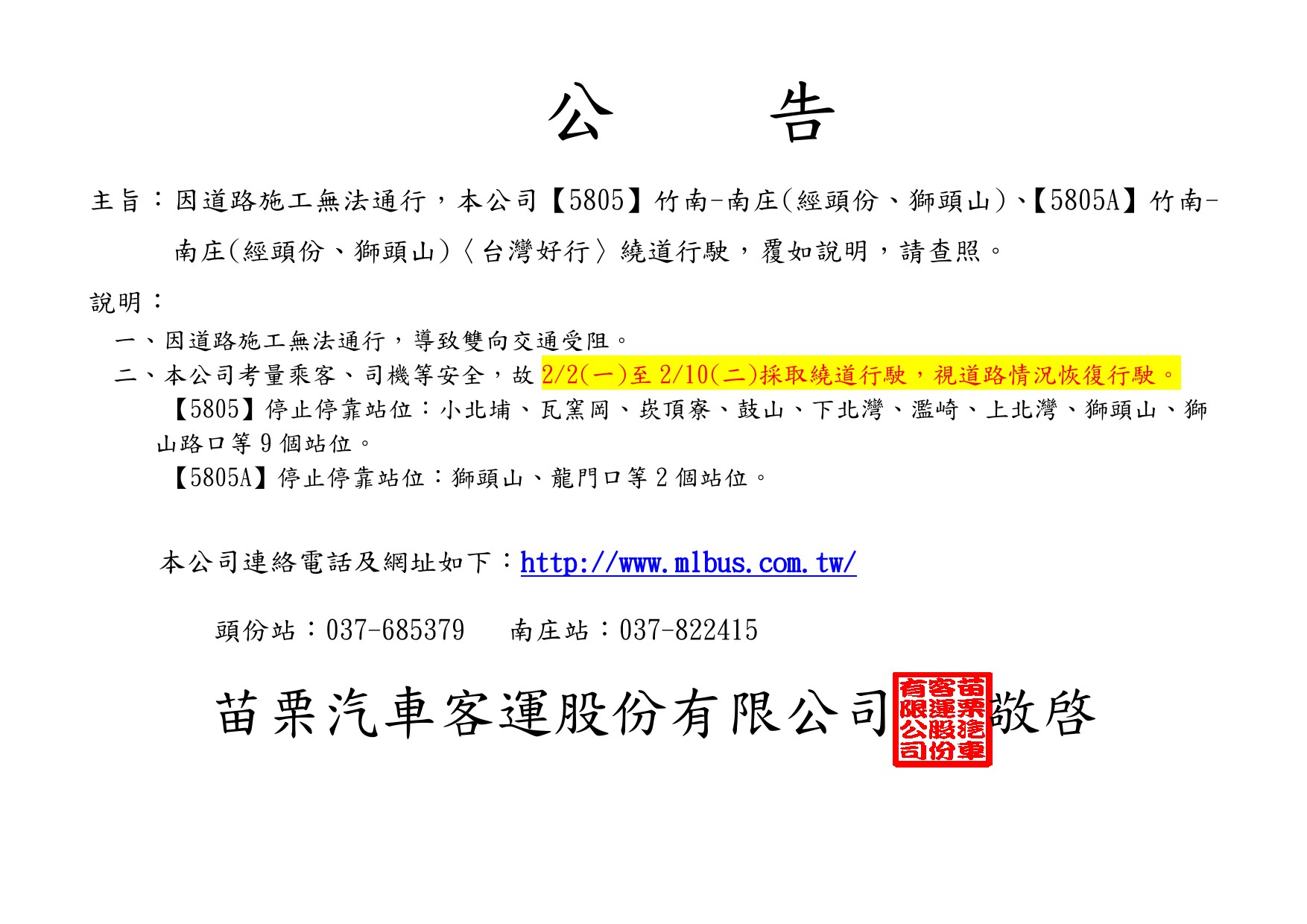 【5805】、【5805A】因道路施工無法通行,故繞道行駛