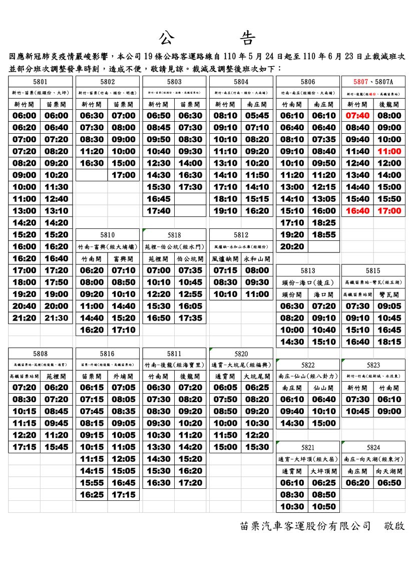 新冠肺炎疫情嚴峻,本公司19條路線6月1日起裁減班次