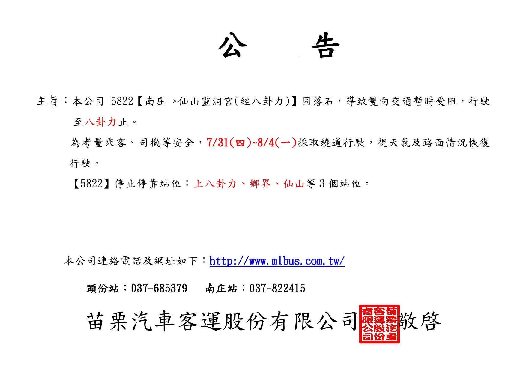 5822【南庄→仙山靈洞宮(經八卦力)】繞道行駛