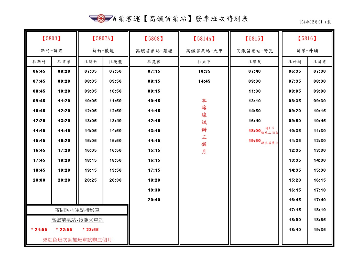 【高鐵苗栗站通車,延駛路線專案】高鐵站發車時刻表