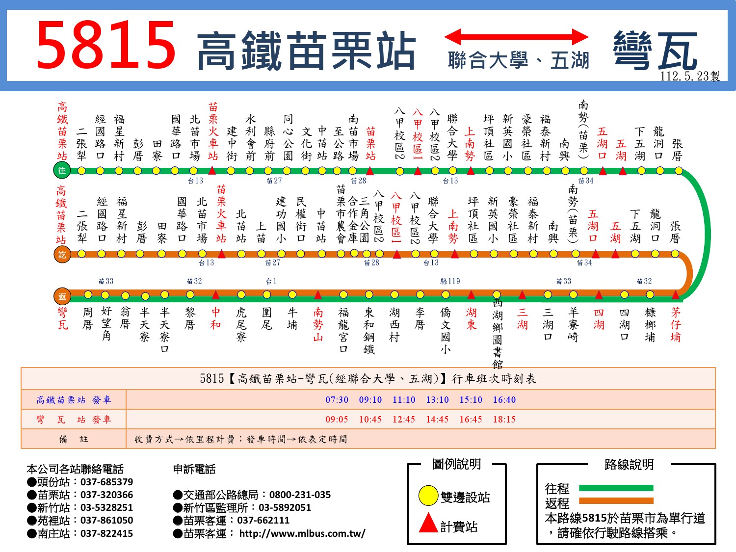 【5815】彎瓦-高鐵苗栗站(經五湖)